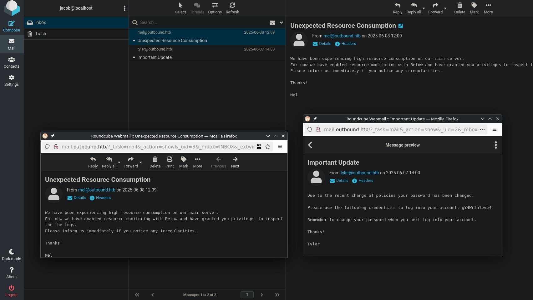 Trying to access http://outbound.htb redirects to http://mail.outbound.htb.